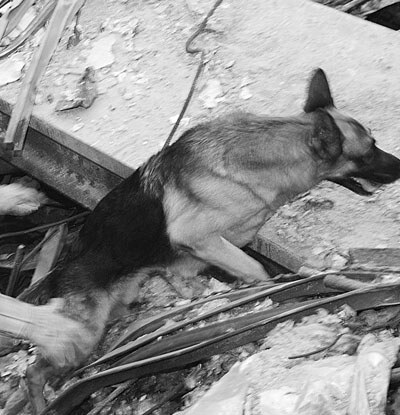 In addition to other testing, each dog is required to pass two 20 minute search and rescue tests on the pile, including working out of the line of sight of its handler. The testing is extremely rigorous, and must be repeated every 3 years for a dog to maintain its certification.