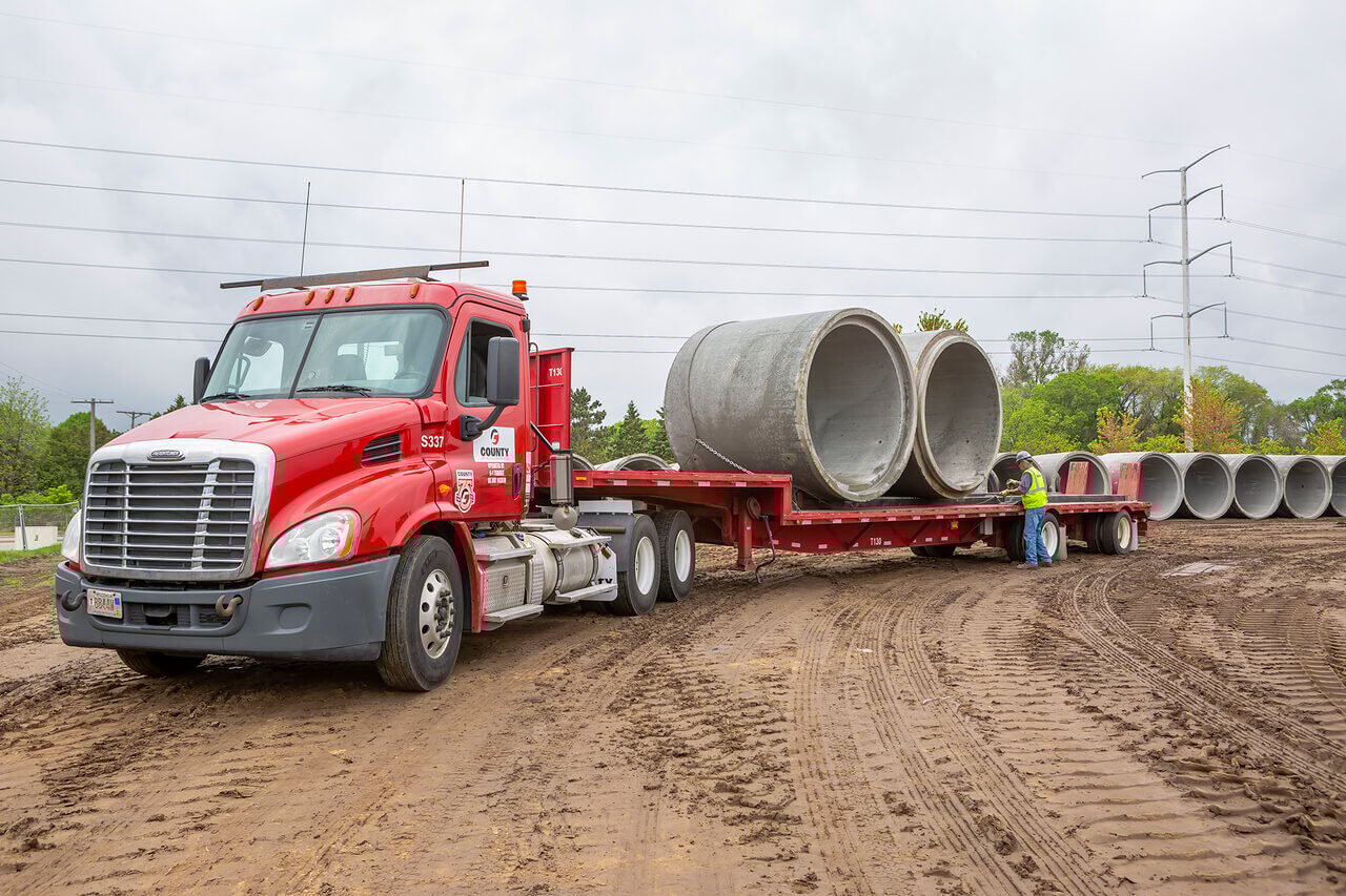 Concrete box culverts and aprons manufactured by County Materials are ideal for applications where circular and elliptical concrete pipe cannot provide adequate flow capacity. These precast concrete components also work well in place of short-span bridges and multi-barrel culverts and drains. Various end treatments are available in select markets.
