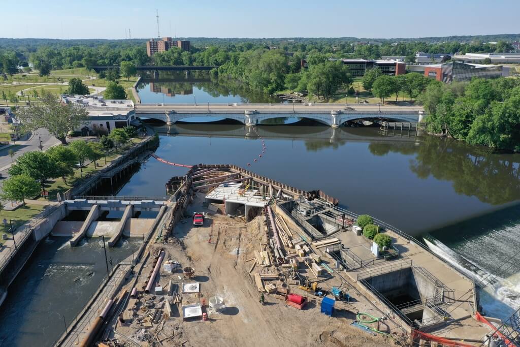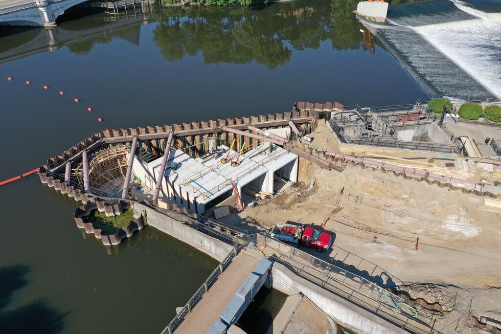 In recent years, the University of Notre Dame has made significant efforts to become more sustainable. One of the university’s latest initiatives is to use renewable energy sources to power at least 10 percent of the campus. Notre Dame and the City of South Bend planned to meet this goal by constructing a hydroelectric facility across the St. Joseph River. Precast box culverts were specified to meet the demands of the location’s active river setting. County Materials manufactured and delivered nearly 140 16’x14’ box culvert sections for this noteworthy project.